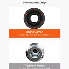 • Stronger grip with 6-point design to prevent stripping or rounding