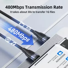 - 480Mbps Data Sync: Transfer data effortlessly with speeds of up to 480Mbps. Send a 1GB file in just 30 seconds.