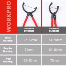 - Universal Fit: Adjustable clamp jaws easily adapt to different oil filter sizes.