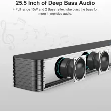 - Powerful 120W Output: Enjoy a robust audio experience with 80W from the sound bar and 40W from the wired subwoofer, providing deep bass and 105dB sound that fills any room.