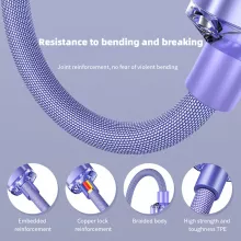 This high-quality cable features a durable, tangle-free nylon braided design. Its sleek black, blue, or purple color options add a touch of style to your tech accessories, while the robust construction ensures long-lasting use. Whether you’re at home, in the office, or on the go, this cable is your perfect companion for fast charging and data transfer.