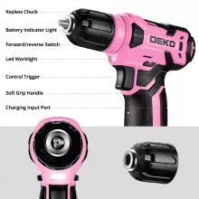 - Lightweight cordless drill: 8V power with LED light, one-handed use, and simple speed adjustment.
