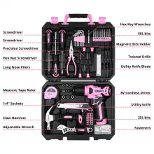 Whether you’re putting together furniture, handling daily home maintenance, or tackling creative DIY projects, this kit has everything in one sturdy case to keep tools organized and easy to find. From drilling and fastening to measuring and cutting, it’s designed to meet the needs of household projects big and small. Its practical mix of manual and power tools makes it ideal for quick fixes, detailed repairs, and everyday use around the house or garden.