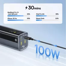 This portable external battery offers two fast charging ports with speeds up to 145W. Charge your MacBook Pro from 0% to 55% in just 30 minutes or take advantage of the 100W single-port super fast charging for maximum efficiency. With its 65W high-speed input, the power bank itself recharges fully in only 2 hours, so you’re always ready for your next move.