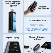 Never run out of power again with this 145W Fast Charging Power Bank. Designed with a massive 20800mAh capacity, it keeps your devices charged whether you’re traveling, working on the go, or enjoying a weekend trip. With a sleek, compact design that weighs just over 1 lb, it slips easily into your bag, making it the perfect travel companion. Airline-approved and built with multiple safety protections, you can confidently carry it wherever life takes you.