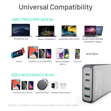 - USB-C PD & PPS: Supports up to 100W for laptops and 65W/45W for other devices.