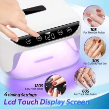 Customize your nail curing with 4 precise timer options and an intelligent infrared sensor. Choose 10 seconds for a quick touch-up, 30 seconds for standard color, 60 seconds for thick gel polish, or 120 seconds for a gentle, low-heat cure. The automatic sensor activates the lamp when your hands enter, saving time and eliminating the need for manual adjustments.