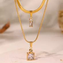 Indulge in timeless elegance with the Three Colors Square Zircon Pendant Necklace. This stunning piece combines luxurious 18K gold plating with sparkling zircon stones, creating an eye-catching accessory that’s perfect for any occasion. Featuring a unique two-layer chain design, this necklace offers a modern twist on classic style. Whether you’re dressing up for a party, a night out, or simply want to add sophistication to your everyday look, this necklace will complement your style beautifully. The square zircon pendant in three colors adds a vibrant touch to the classic gold plating, making it a versatile accessory for any wardrobe.