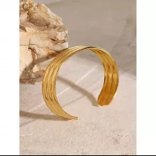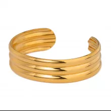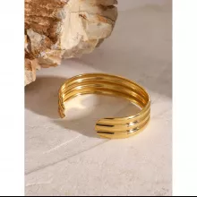 Elevate your style with the 18K Gold Plated Triple-Layer Tubular Glossy Open Cuff Bracelet – a masterpiece designed for the modern woman who loves to stand out. This stunning bangle combines the elegance of a triple-layer tubular design with a glossy finish that exudes luxury. Crafted with high-quality stainless steel and plated with durable 18K PVD gold, this bracelet promises long-lasting shine and elegance. Its open cuff design not only adds a touch of sophistication but also offers easy wearability for any occasion.
