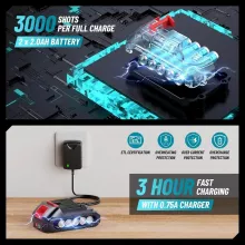 • Cordless Freedom & Power: The high-performance 4.0Ah battery provides ample runtime to drive hundreds of nails on a single charge, giving you complete freedom to work anywhere without being tethered to a generator or outlet.