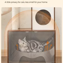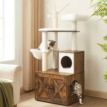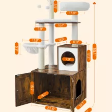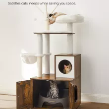 - 2-in-1 Design: A cat tree and litter box enclosure in one compact unit, saving space without sacrificing functionality.