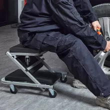 The 2-in-1 Z-Creeper Seat is the perfect solution for anyone working in a garage or repair shop. With its smart folding design, it quickly transforms from a low-profile creeper to a sturdy mechanic stool, saving you time and effort. Whether you need to slide under your car or sit comfortably while working on low areas, this tool keeps you supported and reduces strain on your back and knees.