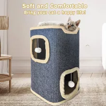 The design of this cat house ensures both entertainment and comfort. The first and second floors each feature openings that invite cats to crawl through, explore, and play. The third floor doubles as a soft cat nest — the ultimate spot for napping. To keep things exciting, the house includes a playful hanging toy that stimulates curiosity and encourages active fun.