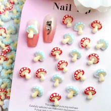 These resin mushroom nail charms are not only adorable but also versatile. Their bright blue and red colors with playful polka dots create a fun and cheerful look that will instantly grab attention. Whether you’re a nail art enthusiast or a beginner, these easy-to-apply charms are perfect for adding a touch of whimsy to your nails.