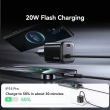 This fast charger is the ultimate combination of power, speed, and portability. Its advanced GaN technology allows it to deliver high-speed charging while staying cooler and more efficient than traditional chargers. With a 20W output, it ensures your devices charge faster, letting you spend more time using your phone, tablet, or laptop and less time waiting for them to charge.