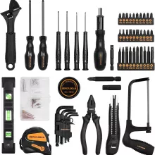 Take on any repair or project with confidence using this comprehensive 218-piece household tool kit. Built for both beginners and seasoned DIY enthusiasts, this set includes everything you need for everyday home maintenance, auto repairs, and creative projects. Each tool is crafted from high-strength chrome vanadium steel with a protective oxide finish, ensuring exceptional durability and long-lasting performance.