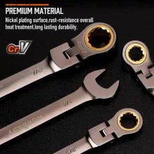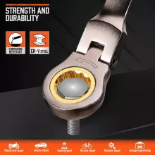 Crafted from high-strength chrome vanadium steel, these wrenches are nickel-plated for superior durability and resistance to wear. That means they’ll stand up to years of tough use without losing performance. The 72-tooth ratchet design allows for smooth operation with just a 5-degree swing arc, making them perfect for tight or awkward spaces where traditional wrenches can’t reach. Plus, the 180-degree flex-head gives you even more control in difficult angles.