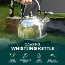 Whether you’re camping, hiking, or simply enjoying the great outdoors, this 2L Stainless Steel Whistling Kettle is the perfect companion. Its portable design and practical features make it an essential addition to your camping cookware set. Crafted from durable stainless steel, this kettle ensures long-lasting performance and can withstand the rigors of your outdoor adventures.