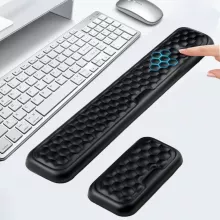 Unlike ordinary wrist pads, this set combines ergonomic shaping with a textured honeycomb massage surface for improved blood flow and reduced stiffness. The enlarged, thickened size gives you extra cushioning for both mouse and keyboard use, saving you from buying separate products and ensuring a consistent, comfortable feel across your entire workspace.