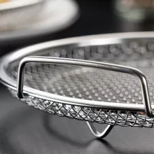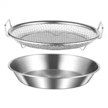 Crafted from high-quality stainless steel, both the round mesh basket and tray are heat-resistant and safe to use in the oven and dishwasher. The tray catches excess oil while the basket lets food cool and drain quickly. It’s your go-to solution for clean, crispy, delicious results every time.