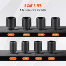 - Complete 8-Piece SAE Set: Includes 1″, 1-1/16″, 1-1/8″, 1-1/4″, 1-5/16″, 1-3/8″, 1-7/16″, and 1-1/2″ sockets, covering a wide range of vehicle applications.