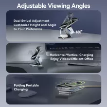 This charger is not just another wireless pad. Its foldable, magnetic design lets you adjust angles for hands-free video viewing or efficient office work while charging. The strong magnet ensures your devices stay perfectly aligned for consistent power delivery. Whether at home or traveling, it keeps all your essential devices powered in one sleek, compact station.
