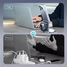 Perfect for your bedside table, desk, or coffee table, this charger keeps your devices powered and organized. Use it during work hours to charge your phone and earbuds while catching up on calls or music, or at night to wake up to fully charged devices. Its foldable design makes it ideal for packing in a bag and charging on the go without clutter.