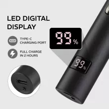 This trimmer features cordless operation with Type-C fast charging for up to 90 minutes of uninterrupted use. The intuitive digital display lets you monitor battery levels so you’ll never be caught off guard. All three replaceable heads are fully detachable and washable, ensuring quick, hygienic cleaning after each use. A magnetic dust cover keeps blades protected and ready for the next grooming session.