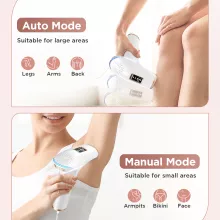 This epilator offers two operating modes for ultimate convenience. Manual mode is perfect for small and sensitive areas, while automatic mode is ideal for larger surfaces. The device interrupts the hair growth cycle to gradually reduce hair regrowth, helping you achieve lasting smoothness without irritation or pain.