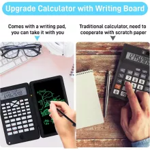 - 3-in-1 Functionality – Scientific calculator, erasable writing pad, and protective folding case in one.
