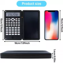 Take your calculations to the next level with this 3-in-1 Scientific Calculator, combining a powerful scientific calculator, a foldable protective cover, and an erasable LCD writing pad in one sleek design. Measuring just 5.91 x 3.54 inches, it’s small enough to fit in your pocket yet equipped with a generous 6-inch display for easy reading. Whether you’re crunching numbers for class, jotting quick notes at work, or solving complex formulas, this all-in-one device keeps you productive wherever you go.