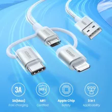 This 3-in-1 charging cable is perfect for anyone with multiple devices. It comes equipped with USB-A on one end and three connectors on the other: Lightning, USB-C, and Micro USB. Whether you’re charging an iPhone, Android device, or any other gadget, this cable adapts to your needs, offering unparalleled compatibility. Plus, with its MFi certification, you can trust that your Apple devices are in safe hands, ensuring a reliable charge every time.