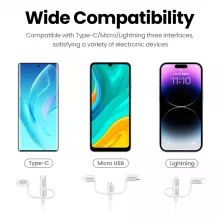 - Versatility: One cable for all your devices—Lightning, USB-C, and Micro USB compatibility.