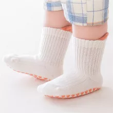 Made from a soft blend of cotton and spandex, these socks are gentle on delicate skin and stretch to fit snugly, offering a perfect fit. The non-slip soles ensure your child can move confidently on smooth or slippery floors without the fear of slipping, making them ideal for indoor play, daycare, or even just relaxing at home. The simple, solid color design makes these socks a versatile accessory for any outfit.