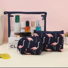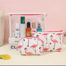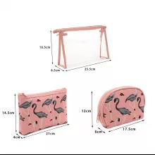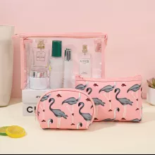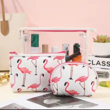 Unlike ordinary cosmetic pouches, this set doesn’t just offer storage — it brings a cheerful vibe to your routine. The cartoon flamingo design makes it unique and eye-catching, while the transparent waterproof PVC ensures both durability and convenience. This is not just a bag set; it’s a blend of fashion, function, and fun.