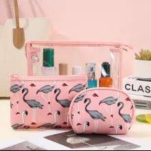 Brighten up your daily routine with this charming 3-piece flamingo makeup bag set. Designed with playful cartoon flamingo prints and crafted from high-quality waterproof transparent PVC, these bags combine style with practicality. Whether you’re getting ready at home or packing for a weekend trip, these organizers keep your essentials neat, visible, and protected.