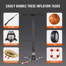 Get precision inflation every time with this 3-stage high-pressure hand pump, capable of reaching up to 4500 PSI (30 MPa). Designed for versatility and durability, this pump is perfect for filling air rifles, pistols, car tires, bike tires, kayaks, and even sports balls. Its rugged stainless steel body ensures long-lasting performance, while the ergonomic rubber handle makes pumping comfortable and secure.