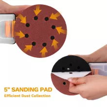 This sander is built with convenience in mind. The lightweight body at just 3.6 lbs makes it comfortable to handle for longer sessions without fatigue. The 5-inch sanding pad provides excellent coverage, while the integrated dust collector keeps your workspace cleaner and your breathing safer. Plus, the included set of 16 sandpapers ensures you’re ready to tackle a variety of tasks right out of the box.