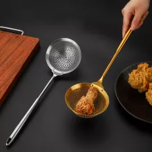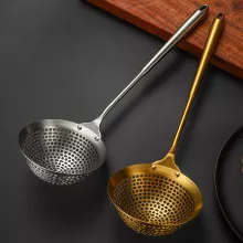 - Smart Grid Design: The finely distributed holes allow you to drain water effectively while trapping even the smallest food particles, making it great for skimming floating foams or draining fried foods.