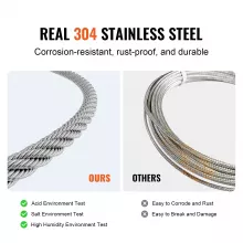 Upgrade your outdoor spaces with this 30-meter (100 ft) stainless steel wire rope kit, built to handle the toughest tasks with ease. Designed for strength and resilience, this heavy-duty wire cable is perfect for garden fencing, balcony railings, deck handrails, tent setups, and more. With a breaking strength of 1600 lbs, it stays secure, taut, and reliable, even under heavy loads or frequent use. Its polished finish ensures easy handling and safer installation, making it the ideal choice for both DIY enthusiasts and professional projects.