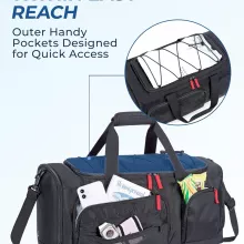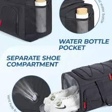 This gym and travel bag is all about convenience. It comes with an independent shoe compartment with breathable design to keep footwear fresh, plus dedicated water bottle holders on both sides that fit bottles up to 32oz. The exterior pocket allows quick access to essentials like your phone or keys, while the adjustable lanyard adds an extra attachment point for accessories.