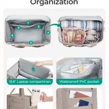 Forget the hassle of digging through your bag. This tote is designed with 6 interior pockets and 5 exterior pockets for effortless organization. A padded 15.6″ laptop sleeve protects your tech, while the zippered PVC-lined waterproof pocket keeps toiletries or damp items separate. Whether it’s snacks, electronics, or travel documents, everything has its place and stays easy to find.