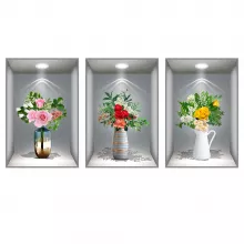 Refresh your home or business decor with our 3D Effect Potted Triptych Posters. This eye-catching set of three decorative wall stickers brings the beauty of nature indoors with their vibrant and life-like designs. Perfect for hallways, staircases, hotels, or restaurants, these plant-themed stickers create a warm and inviting atmosphere that captivates everyone who walks by.