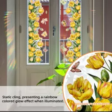Transform any plain window or glass door into a stunning work of art with this 3D Yellow Flower Stained Glass Decorative Sticker. Designed to capture and reflect sunlight beautifully, this elegant window film adds a touch of charm and warmth to your space. As the sun shines through, the vibrant yellow floral patterns create a mesmerizing dance of colors that instantly brightens your home and mood.