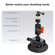 Equipped with a double ball head design, the mount offers 360-degree rotational adjustment for capturing every angle with ease. The one-touch adjustment latch allows for smooth repositioning, while the ARRI pin prevents unwanted shifting, giving you complete control over your shots. This makes it perfect for action sequences, car vlogs, or creative photography projects.