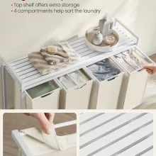 Say goodbye to laundry chaos with this spacious and practical 4-Compartment Laundry Hamper. Designed for ultimate convenience, it makes sorting laundry a breeze while keeping your space neat and tidy. With a total capacity of 42.3 gallons (160L), this hamper features four removable fabric liners to help you separate laundry by color, fabric type, or family member. No more hunting for missing socks or searching for laundry detergent—everything you need is within easy reach!