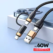 Stop dealing with multiple charging cables and invest in the U62 4-in-1 60W PD USB C Cable. Whether you need fast charging or data transfer, this cable is the perfect tool to keep all your devices powered and synced. Order now and experience the convenience of a multi-functional cable that works with all your devices!