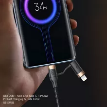 • Multiple Charging Outputs: This cable supports 4 different connections – USB to Type-C, Type-C to Type-C, USB to Lightning, and Type-C to Lightning – making it compatible with a wide range of devices.