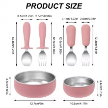 4PCS Baby Feeding Bowl & Utensil Set – Silicone & Stainless Steel