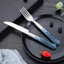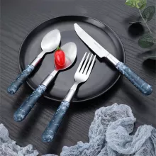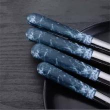 Transform your mealtime with the stunning 4PCS Blue Marble Stainless Steel Cutlery Set. This exquisite set includes everything you need for a sophisticated dining experience—fork, knife, and spoon, all crafted with an eye-catching blue marble design. Perfect for both everyday meals and special occasions, this cutlery set adds a touch of elegance to your table and makes every meal feel like a celebration.
